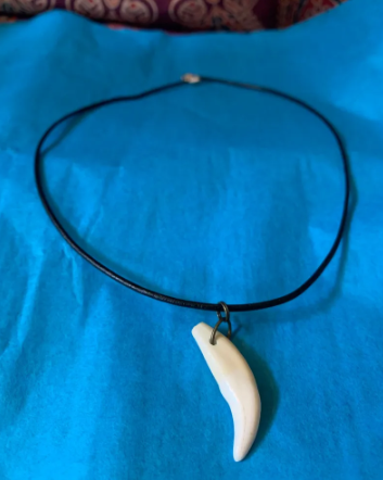 Specially Handcrafted Bone Jewelry – Coyote Canine Necklace with Black Cord