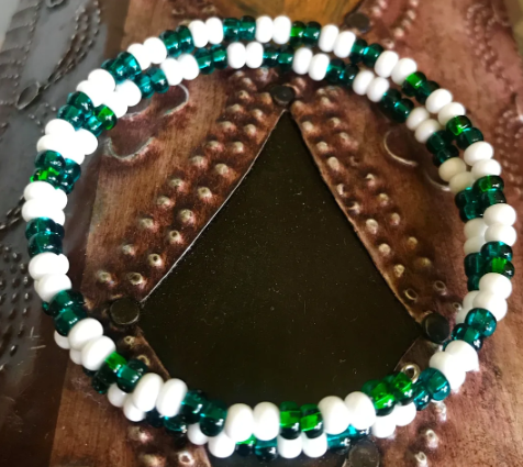 Priestess Miriam’s Handcrafted Orisha Spirit Bead Bracelet Green and White