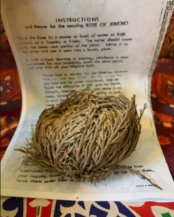 The Rose of Jericho can only successfully wield its influence when cemented in faith. It is also referred to as the Resurrection Plant, with properties from its water including a cleansing of bad influences and a return to peace and abundance.